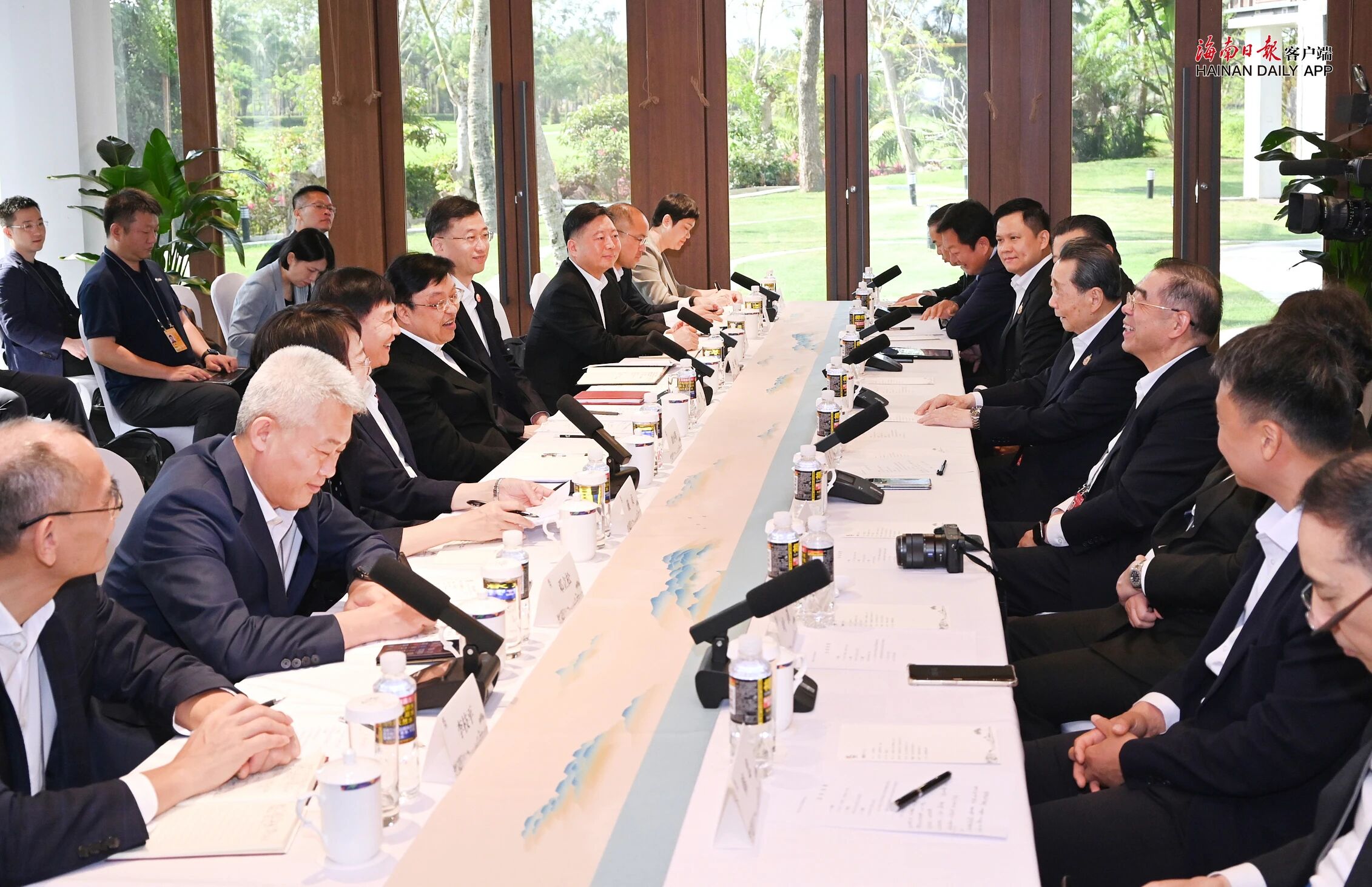 3月24日晚,海南省委書記馮飛在博鼇會見出席博鼇亞洲論壇2026年年會·華商領袖與華人智庫圓桌會議的國務院僑辦主任陳旭以及華商領袖與智庫專家代表。海南省委常委、統戰部部長尹麗波參加會見。謝國民集團資深董事長、謝吉人集團董事長參加會見。