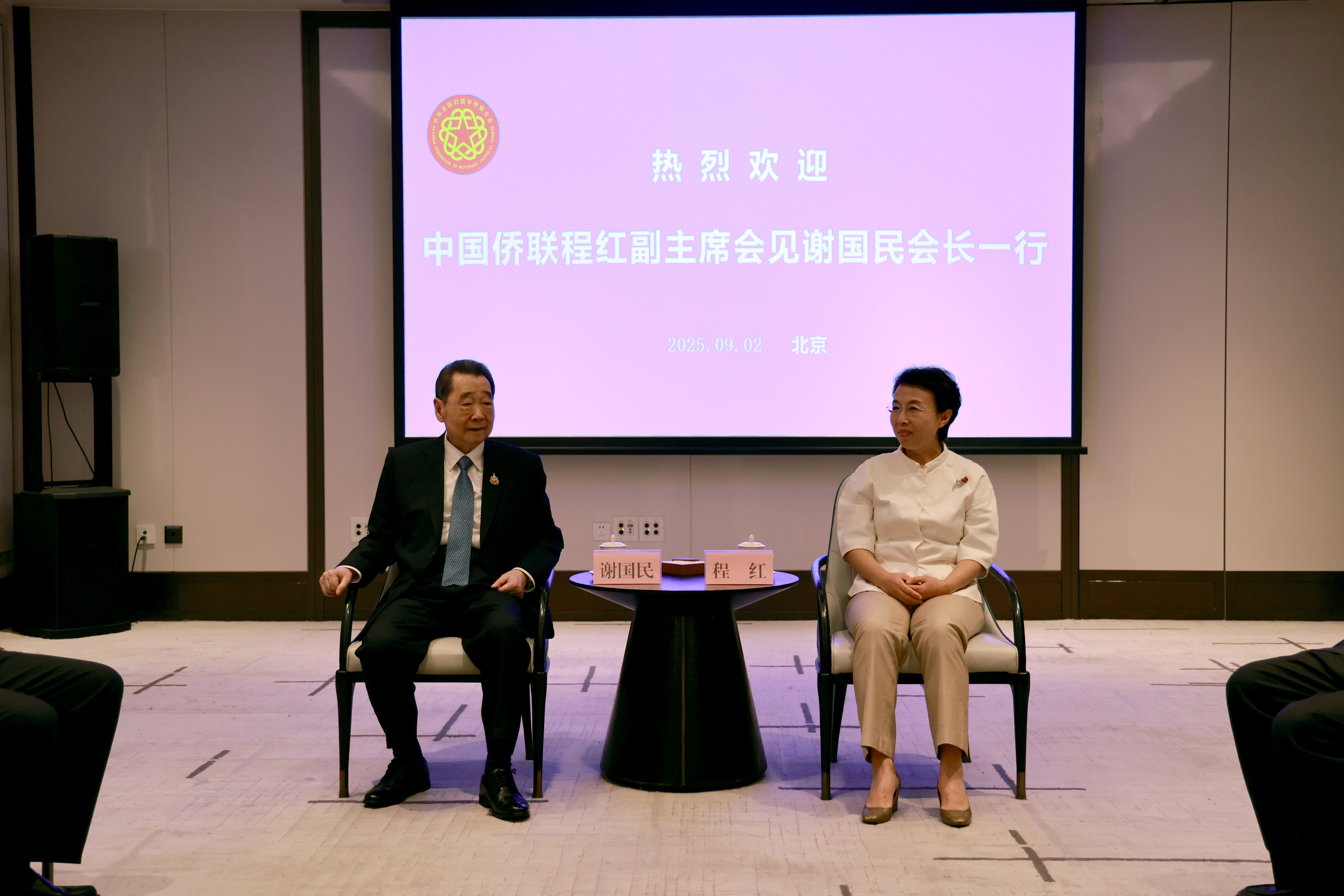 9月2日上午,中國僑聯副主席程紅在北京華僑大廈會見謝國民集團資深董事長、xiejirenjituandongshichangyixing,shuangfangjuxingleqinqieyouhaodehuitan。dangtianshangwu,xiejirenjituandongshichanghaiyingyaocanjialezaijingzhaokaidezhonghuahaiwailianyihuiliujieercichangwulishihui。