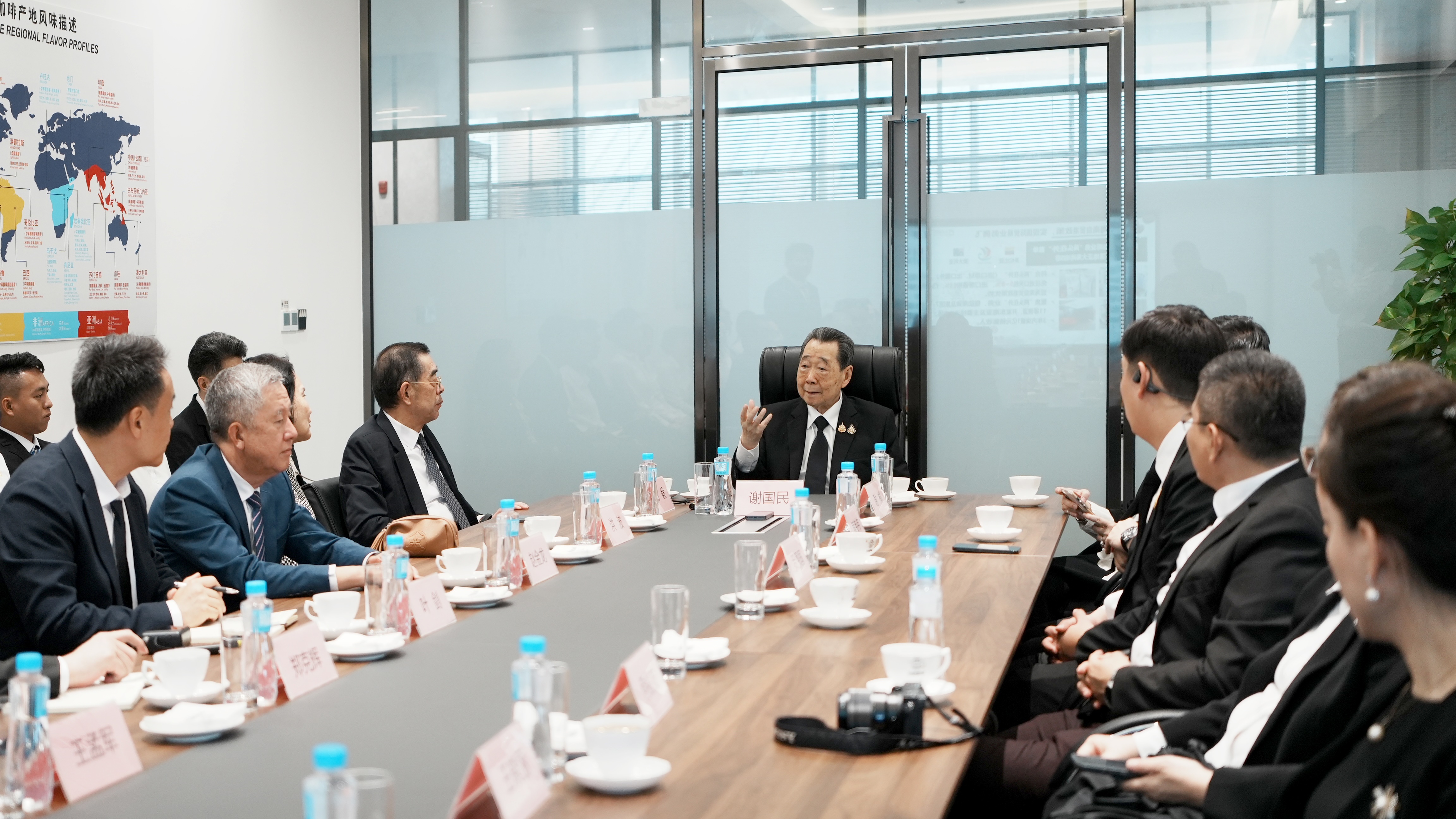 ▲謝國民集團資深董事長聽取正大咖啡事業的工作彙報。