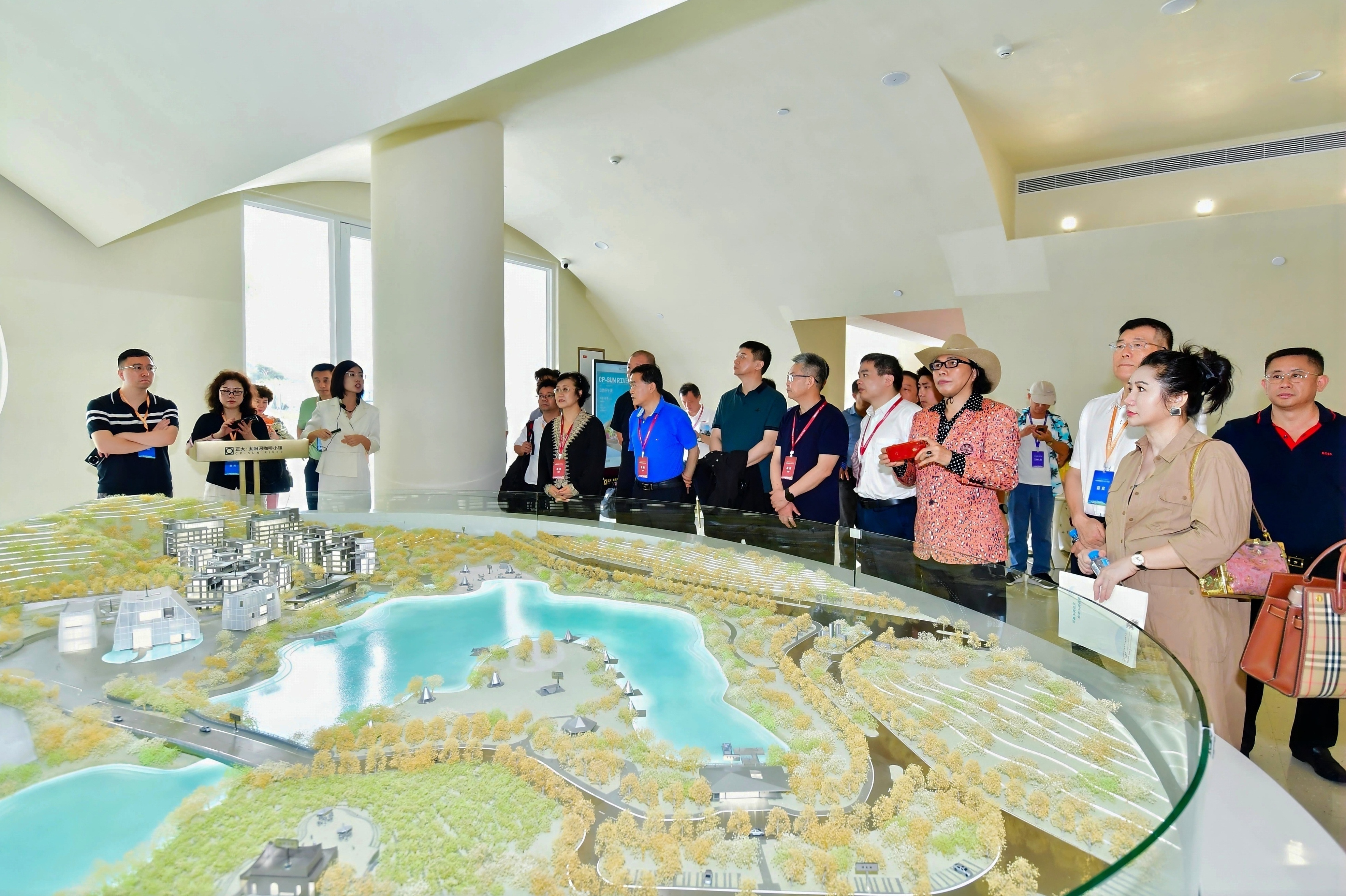 ▲代表團一行聽取正大・太陽河咖啡小鎮的規劃布局。