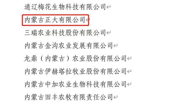 內蒙古正大有限公司獲批農業產業化國家重點龍頭企業!