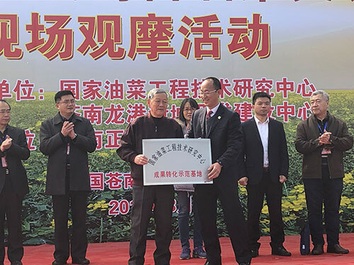 zailonggangxinchengzhengdacangnannongyeshengtaiyuanyiwangwujideyoucaihuahaili,huiyijuxinglexianchangguanmohuodong。cangnanxianfuxianchangchenjiuxizhihuanyingci,nongyenongcunbuyangfanchuchang、華中農業大學科學發展研究院關桓達院長、浙江省溫州市農業農村局鄭慶惕副局長、正大集團農牧食品企業中國區王金文副董事長講話。傅廷棟院士向蒼南正大農業有限公司授牌“國家油菜工程技術研究中心成果轉化示範基地”。