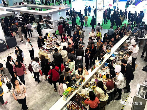 首屆進博會最後一日,正大展館人氣依舊,前來品嚐和購買正大美食的社會團體觀眾絡繹不絕,很多產品供不應求,現場火爆。