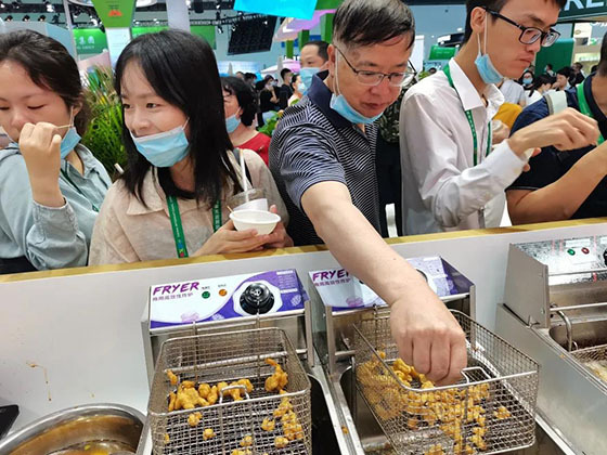正大美食展位飄香四溢,吸引眾多觀眾前來試吃。