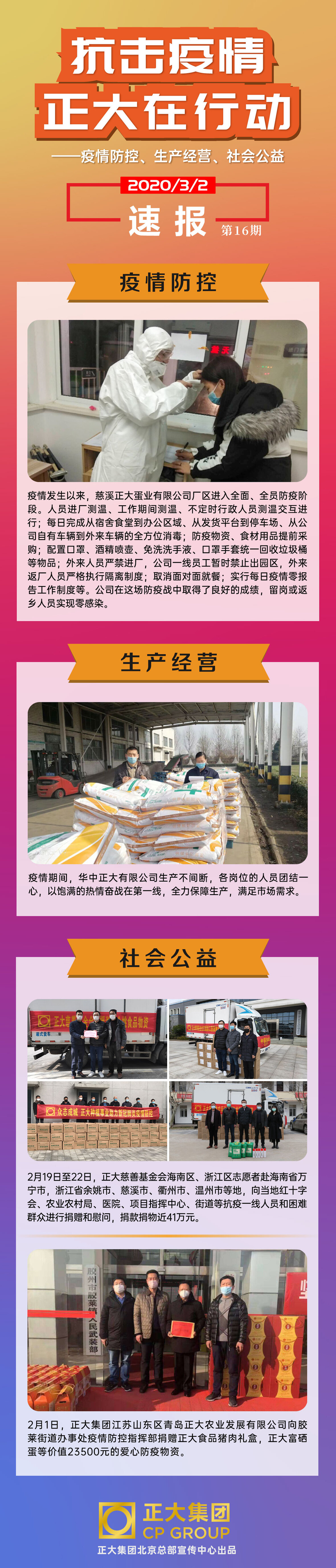 抗擊疫情 正大在行動 2020/3/2 速報 第16期