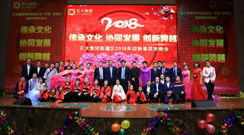 不忘初心,牢記使命,凝心聚力,共贏2018!2月8日,正大集團新疆區召開了以“傳承文化 協同發展 創新跨越”為主題的2017年度優秀表彰暨2018年迎新春聯歡晚會。正大集團農牧食品企業中國區白善霖資深副董事長、馬繼林副董事長蒞臨參會。同時,戰略合作夥伴中華聯合保險烏魯木齊分公司黨委書記、總經理王國棟,中國銀行烏魯木齊中心支行崔思良行長攜團隊受邀參會。