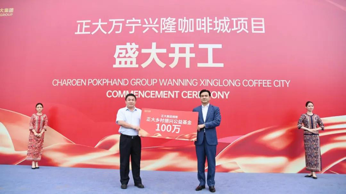 儀式現場,正大集團向萬寧市政府捐贈100萬元成立正大鄉村振興公益基金,旨在促進萬寧鄉村經濟發展、助力萬寧鄉村振興戰略。萬寧市委副書記、代市長王三防和正大集團地產企業中國區首席執行官曹建華代表雙方進行捐贈。
