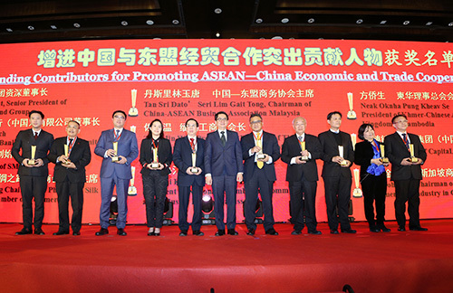 2018年1月23日,由中國-東盟商務理事會和東盟北京委員會共同主辦的“2018 中國-東盟迎新春話合作係列活動”在北京隆重舉行,“增進中國與東盟經貿合作突出貢獻人物獎”頒獎儀式同期舉行。正大集團謝國民資深董事長等十位企業家被授予“增進中國與東盟經貿合作突出貢獻人物獎”。該(gai)獎(jiang)項(xiang)旨(zhi)在(zai)表(biao)彰(zhang)其(qi)為(wei)增(zeng)進(jin)中(zhong)國(guo)與(yu)東(dong)盟(meng)國(guo)家(jia)經(jing)貿(mao)合(he)作(zuo)做(zuo)出(chu)的(de)積(ji)極(ji)推(tui)動(dong)工(gong)作(zuo),以(yi)及(ji)促(cu)進(jin)雙(shuang)方(fang)經(jing)貿(mao)合(he)作(zuo)做(zuo)出(chu)的(de)卓(zhuo)越(yue)貢(gong)獻(xian)。中(zhong)國(guo)國(guo)務(wu)院(yuan)參(can)事(shi)葛(ge)誌(zhi)榮(rong)、泰國駐華大使畢力亞•肯蓬、東盟十國駐華大使館及其代表,商(協)會、知名企業、媒體代表300餘人出席了此次活動。