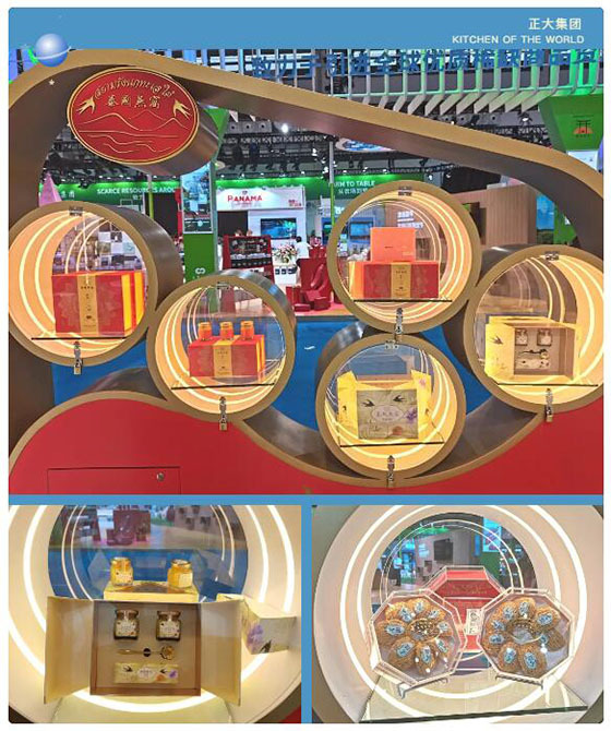 本屆消博會上,集團組織了海內外共6個業務集群參展,安排展出近180種產品,涵蓋了燕窩、咖啡、水產加工品、大米、鱷魚產品、保健品、酒類、飲料及方便食品等多個品類。
