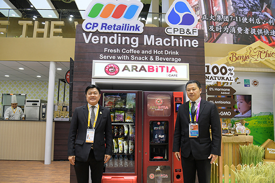 ▲謝吉人董事長與CP Retailink CPO K.Naris在咖啡展台前合影