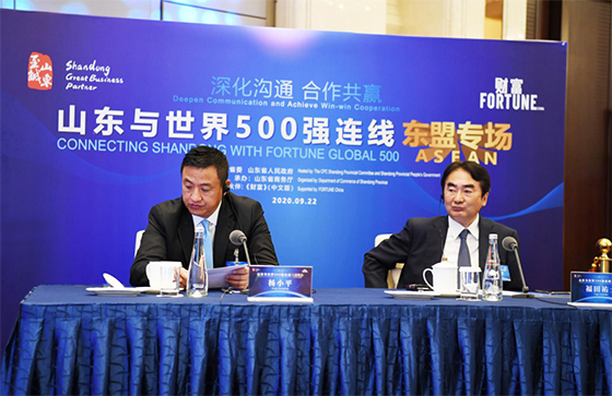 9月22日,由中共山東省委、山東省人民政府主辦,山東省商務廳承辦的“山東與世界500強連線”東盟專場活動在山東濟南舉行。正大集團資深董事長謝國民應邀與中共山東省委書記、省人大常委會主任劉家義連線對話。