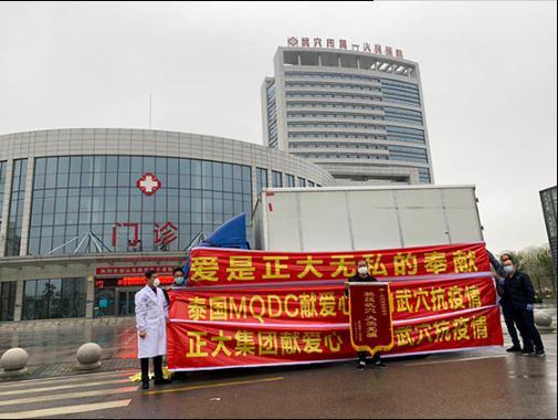2月22日至3月3日,泰國MQDC公司通過北京市正大慈善基金會分6批向湖北省武漢市、黃岡市、孝感市的5家醫院捐贈了總價值100萬元的正大食品物資,慰問、支援工作在防疫一線的醫護人員,馳援湖北疫情防控工作。