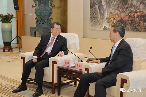 9月12日,“2018世界500強對話湖北”圓桌會議結束後,湖北省委書記蔣超良、省長王曉東在武漢東湖賓館梅嶺2號會見了正大集團資深董事長謝國民一行。