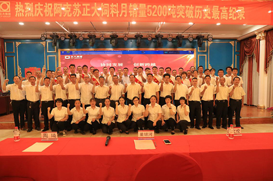 2019年5月,烏魯木齊正大阿克蘇分公司銷量和利潤實現曆史新高!這是阿克蘇團隊協同整合、攻堅克難,共同努力的結果,也是“係統支撐、效率為王、團隊製勝、整合資源、協同發展、創新跨越”六大營銷理念的重要實踐!為進一步激發員工工作熱情,充分調動員工工作積極性和主動性,6月3日,烏魯木齊正大阿克蘇分公司召開了“標杆標兵表彰大會”,正大集團新疆區董銀河資深總裁、閔文倫助理副總裁及60名銷售精英共同出席了此次會議。