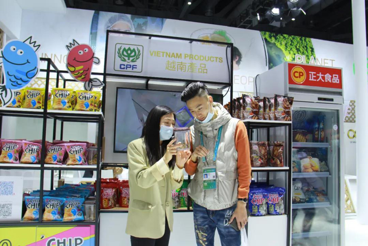 CP越南展台工作人員向觀眾介紹正大魚皮產品。