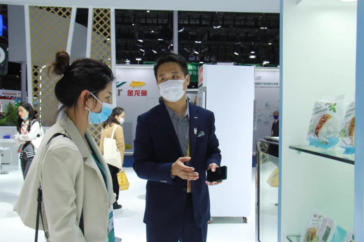 CPRAM展台工作人員向觀眾介紹正大植物基產品。