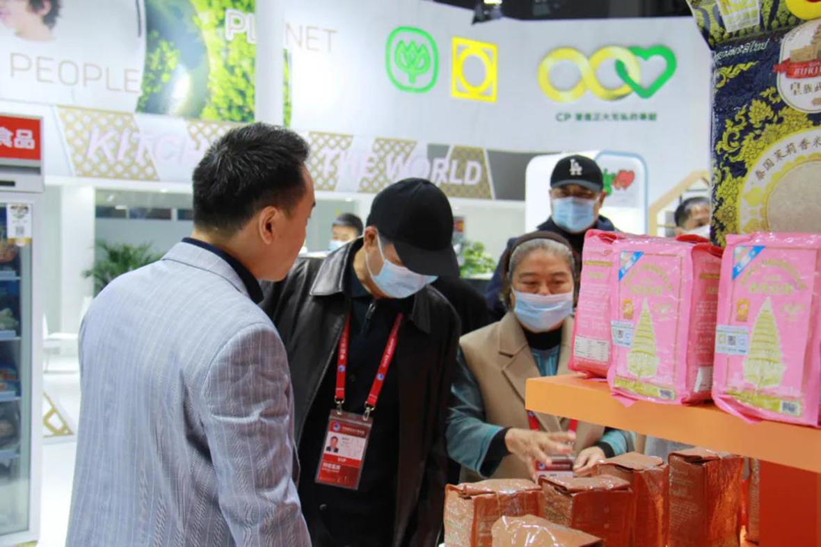 CPI展台工作人員向觀眾介紹正大泰國茉莉香糙米等產品。