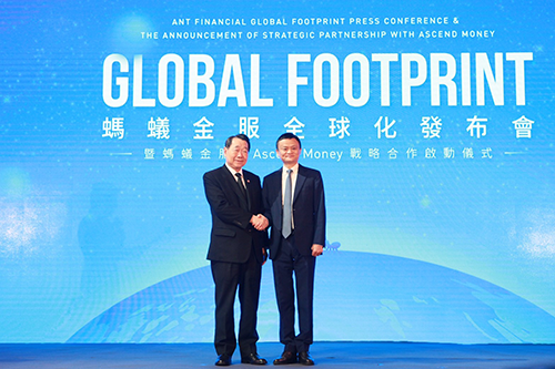 2016年11月1日,螞蟻金服與正大集團旗下企業——泰國領先的支付企業Ascend Money簽訂戰略合作協議。正大集團資深董事長謝國民、阿裏巴巴集團董事局主席馬雲出席簽約儀式。