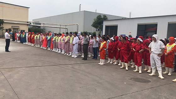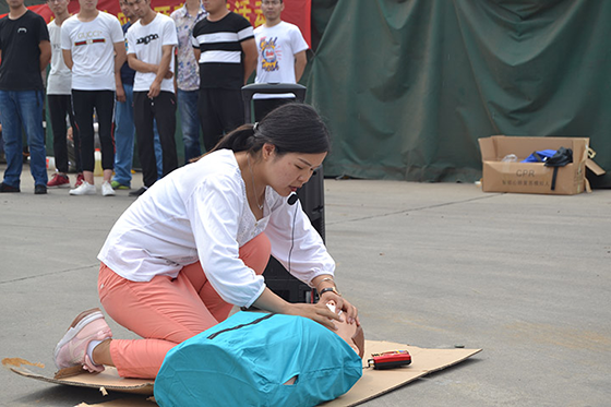演練於上午11時正式開始,模擬油炸機起火,火勢蔓延迅速,直接威脅公司的生產及人員安全,公司應急指揮部啟動應急預案。此次演練分三個部分:第一部分是自救、疏散、報警、接警;第二部分是消防滅火、搶救人員、傷員救護;第三部分是消防器材的使用和心肺複蘇技能演示培訓及實際操作。