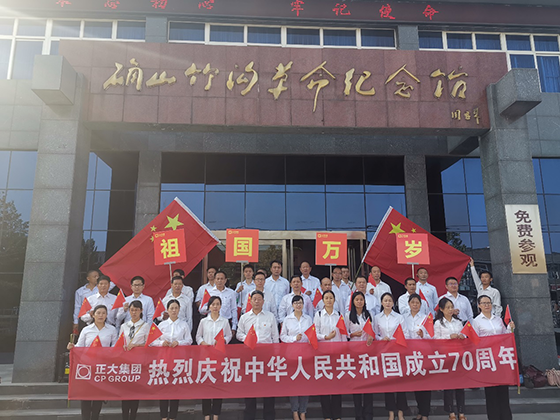 在中華人民共和國建國70周年之際,駐馬店正大有限公司員工來到素有“小延安”之稱的駐馬店市確山縣竹溝鎮的革命紀念館,開展以“迎國慶,緬懷革命先烈,傳承革命精神”為主題的紅色教育活動,深切緬懷老一輩革命家不畏艱險、英勇奮鬥的崢嶸歲月。